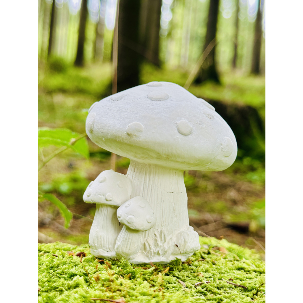 Krásné dekorace na zahrádku v podobě houbiček. Představte si podzimní zahrádku, jak tam ze zbarveného listí vykukuje klobouk jedné z těchto houbiček. Už je máte v košíku?