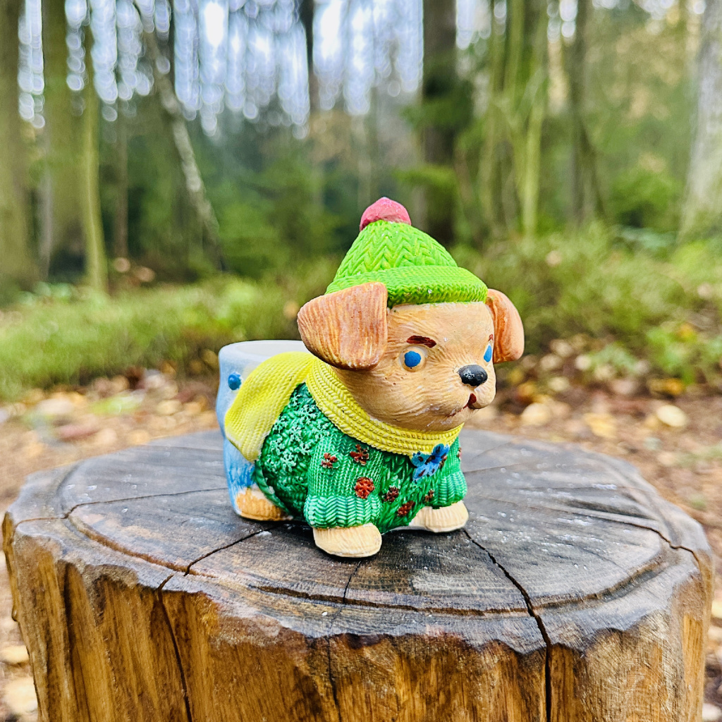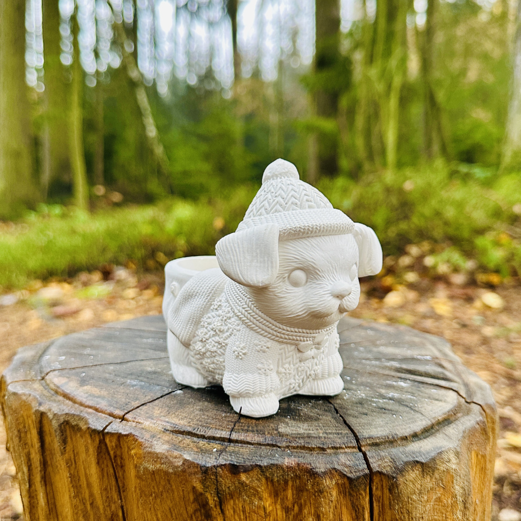 Pejsek má na zádech otvor, který může sloužit na drobnosti nebo malou svíčku